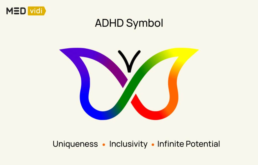 - The ADHD symbol is a rainbow butterfly shaped like an infinity loop, adapted from the neurodiversity symbol.