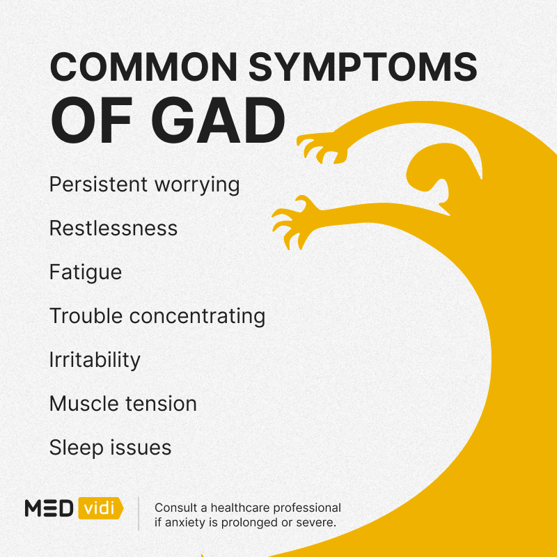 Feeling constantly worried or on edge? Generalized anxiety disorder (medical abbreviation GAD) goes beyond just simple anxiety here and there. It’s a persistent overthinking that can affect your daily life and leave you feeling stressed and afraid. For example, you might worry every day about a job, even with positive reviews from coworkers and managers.